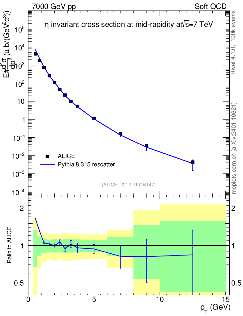 Lines: data, pythia8 8.315 rescatter |