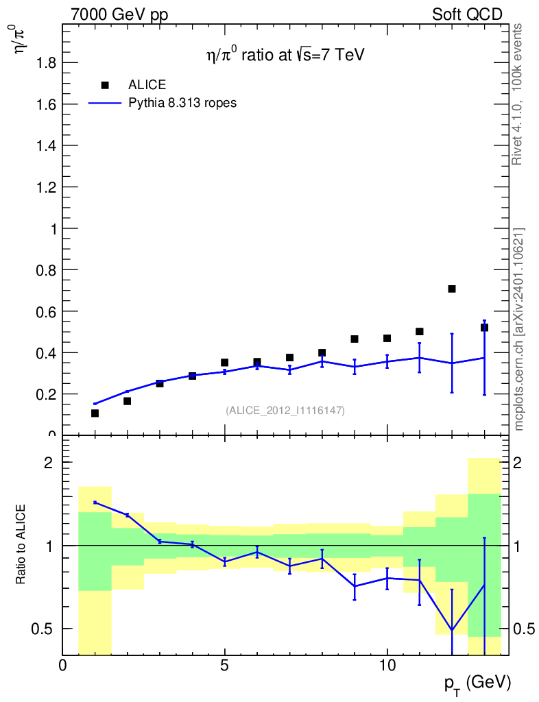 Lines: data, pythia8 8.313 ropes |