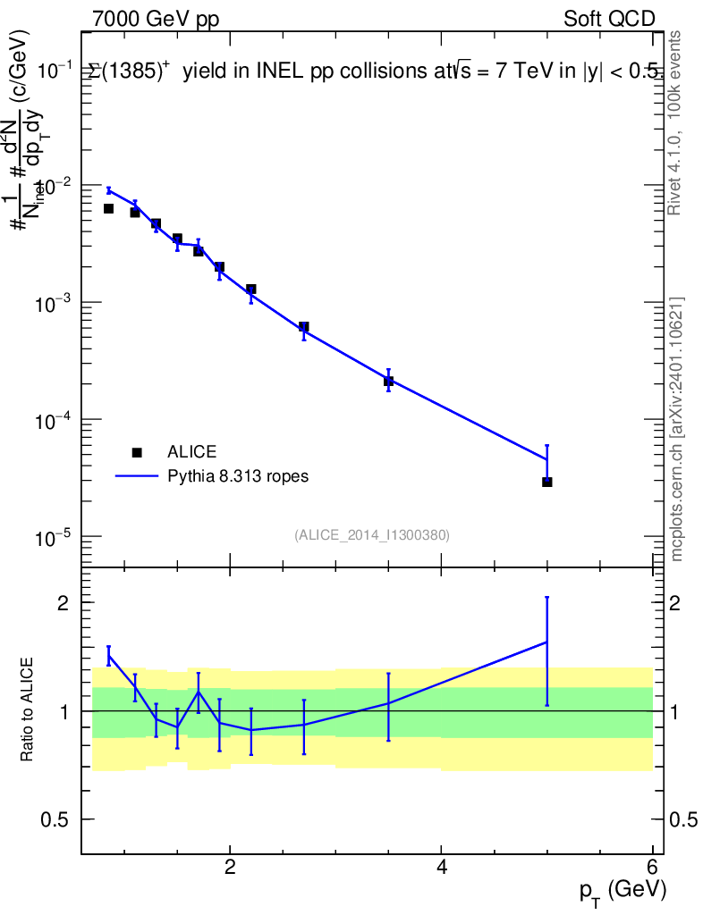 Lines: data, pythia8 8.313 ropes |