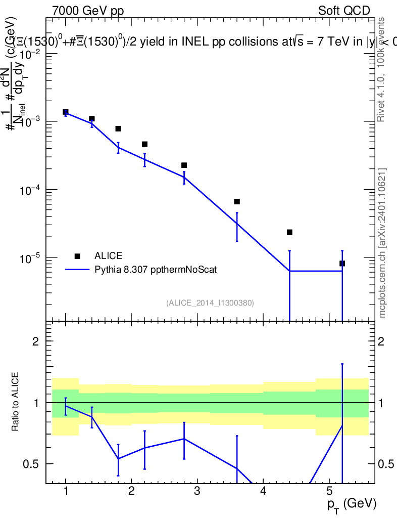 Lines: data, pythia8 8.307 ppthermNoScat |