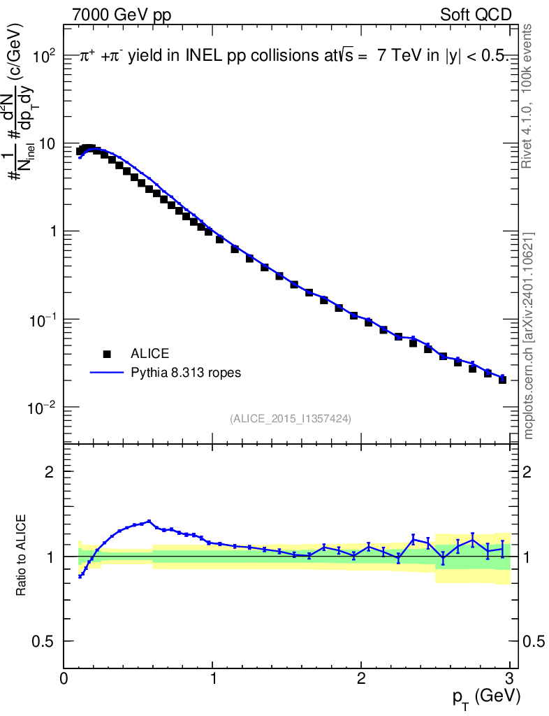 Lines: data, pythia8 8.313 ropes |