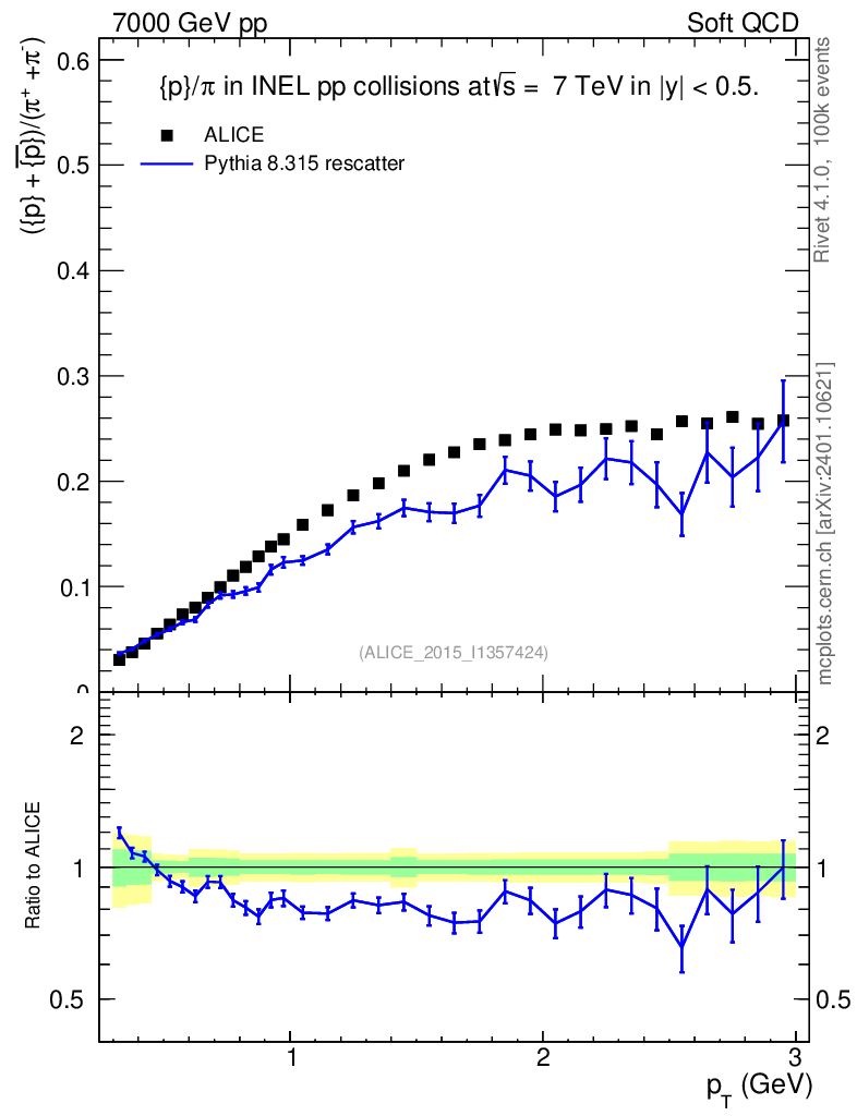 Lines: data, pythia8 8.315 rescatter |