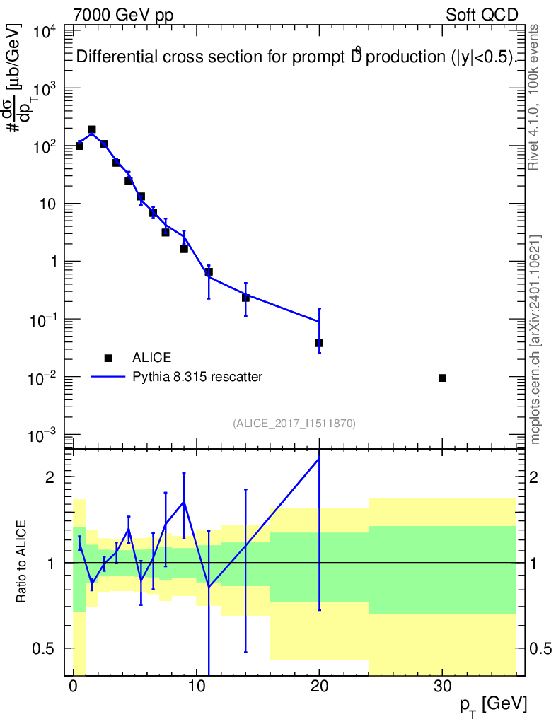 Lines: data, pythia8 8.315 rescatter |