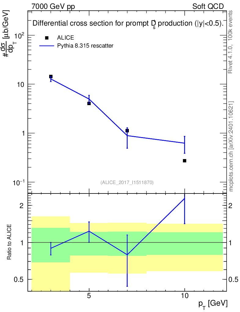 Lines: data, pythia8 8.315 rescatter |
