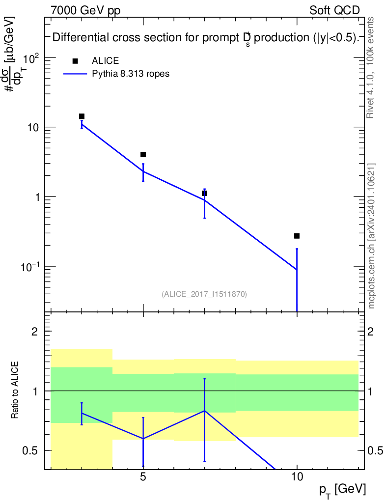 Lines: data, pythia8 8.313 ropes |