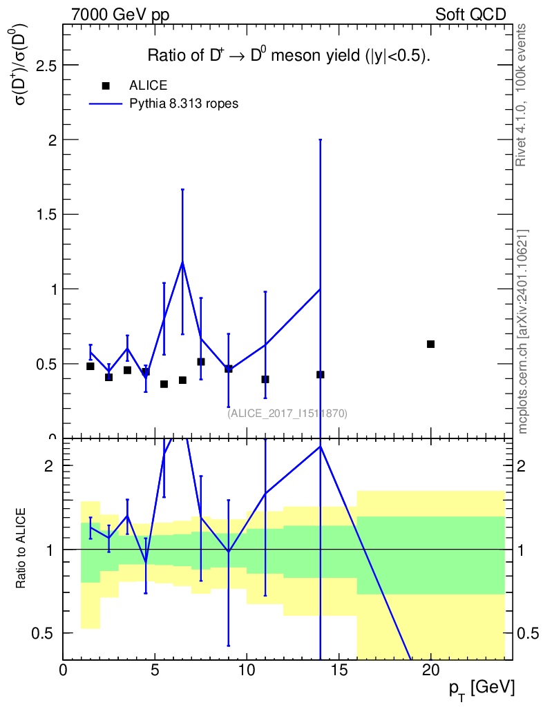 Lines: data, pythia8 8.313 ropes |