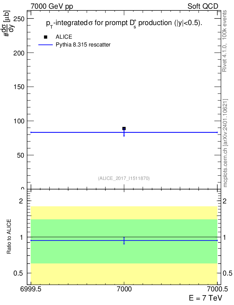 Lines: data, pythia8 8.315 rescatter |