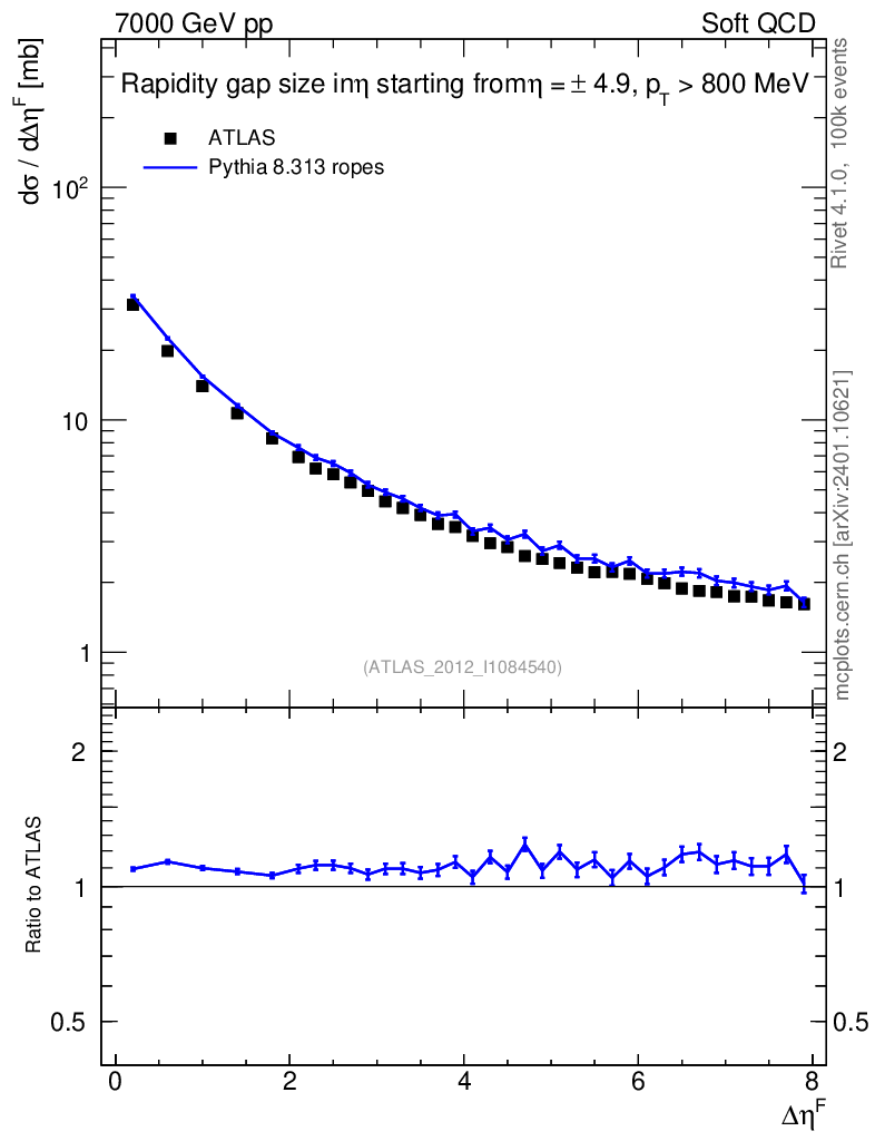 Lines: data, pythia8 8.313 ropes |