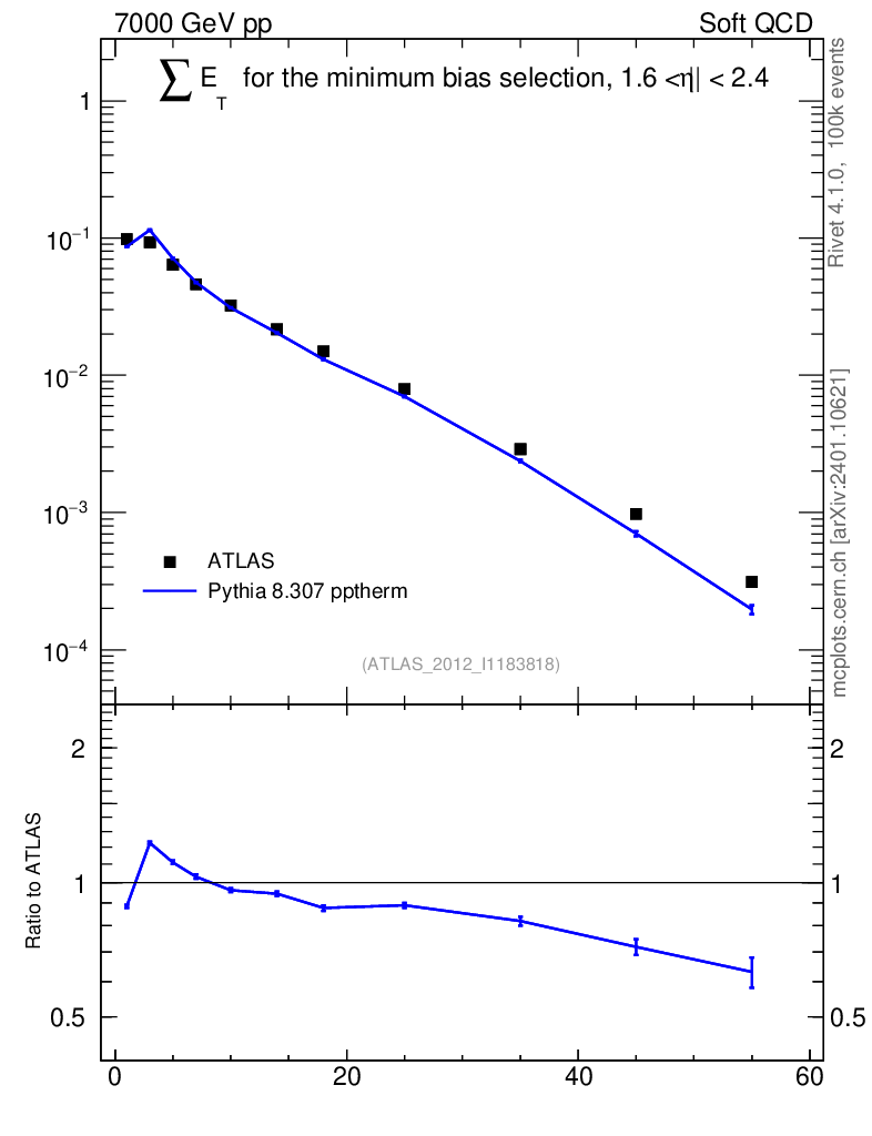 Lines: data, pythia8 8.307 pptherm |