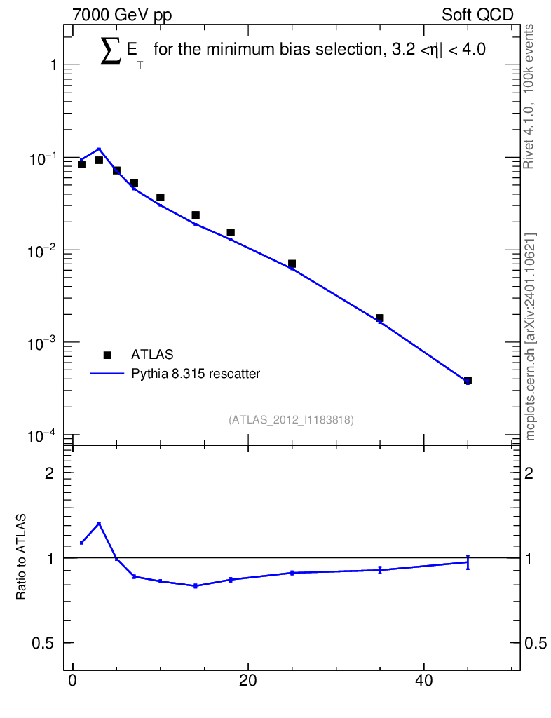 Lines: data, pythia8 8.315 rescatter |