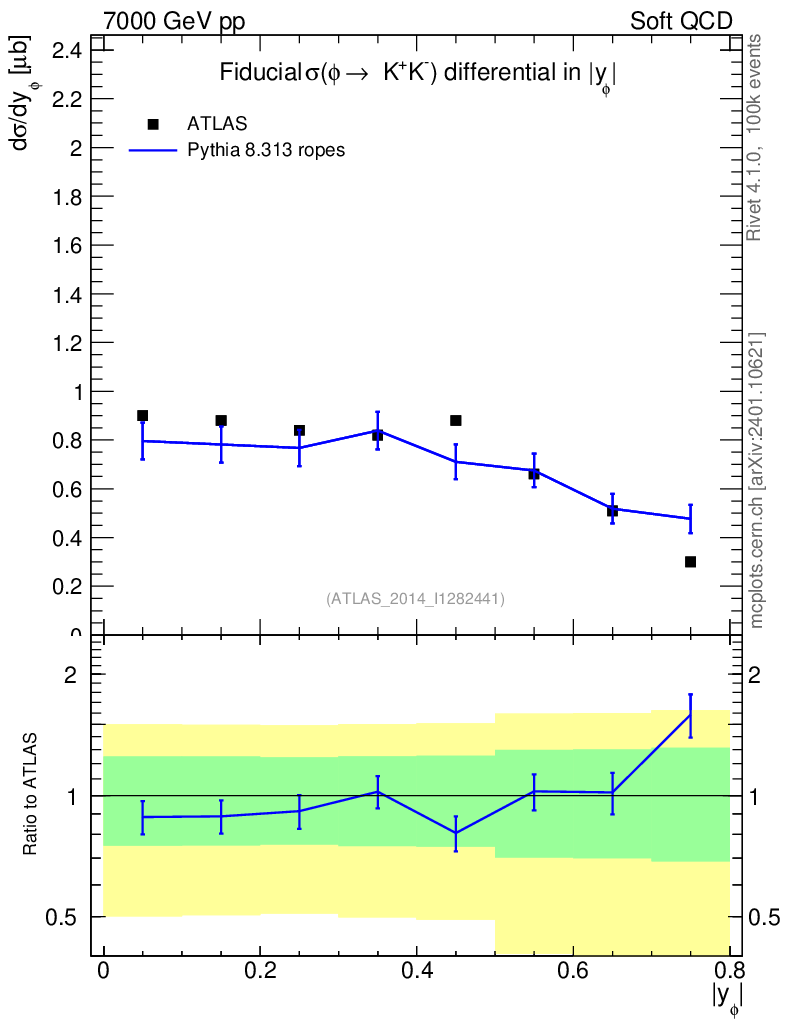 Lines: data, pythia8 8.313 ropes |
