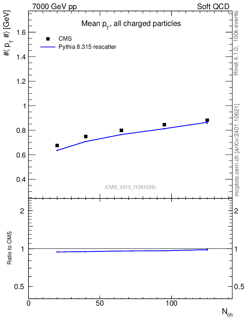 Lines: data, pythia8 8.315 rescatter |