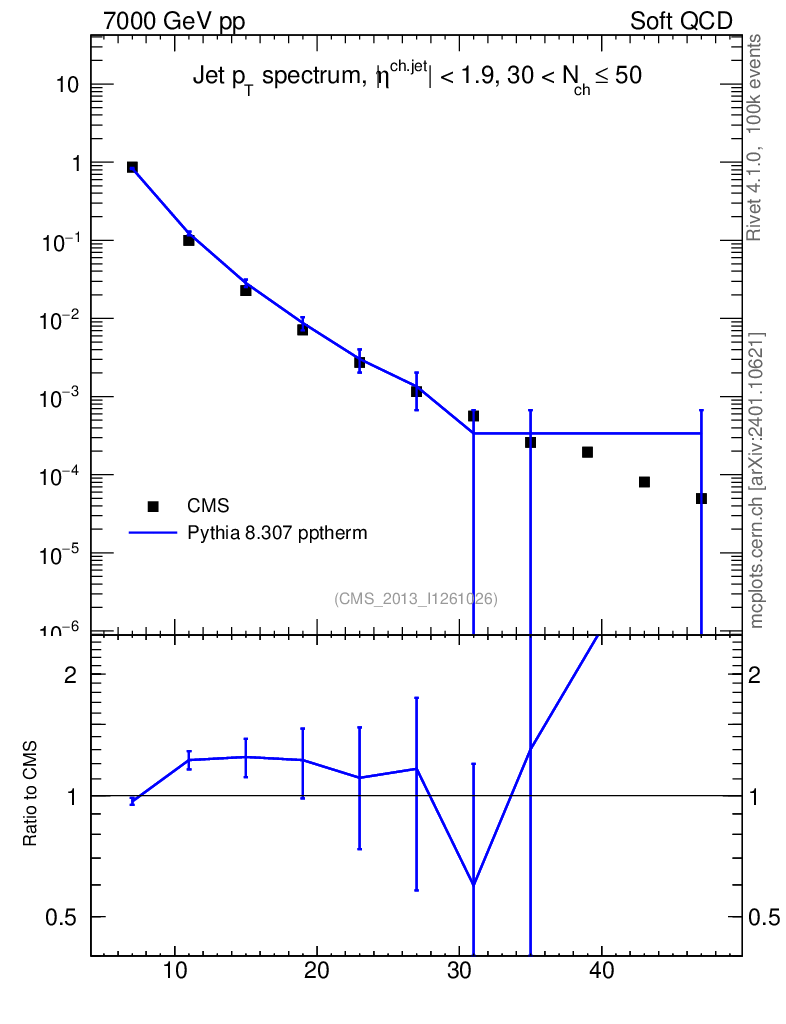 Lines: data, pythia8 8.307 pptherm |