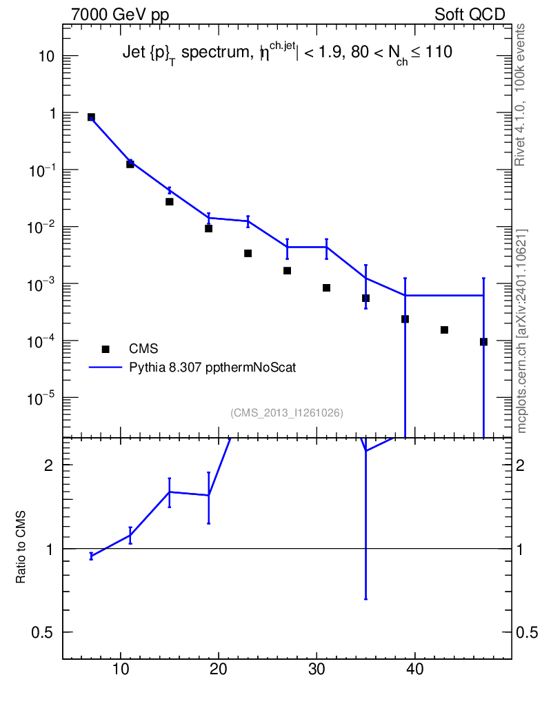 Lines: data, pythia8 8.307 ppthermNoScat |
