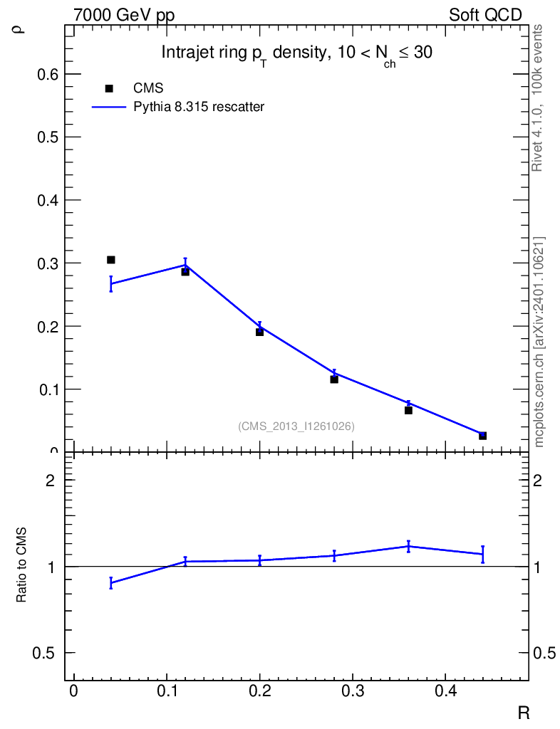 Lines: data, pythia8 8.315 rescatter |