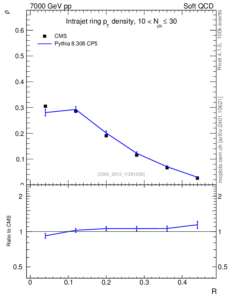 Lines: data, pythia8 8.308 CP5 | compare with other tunes