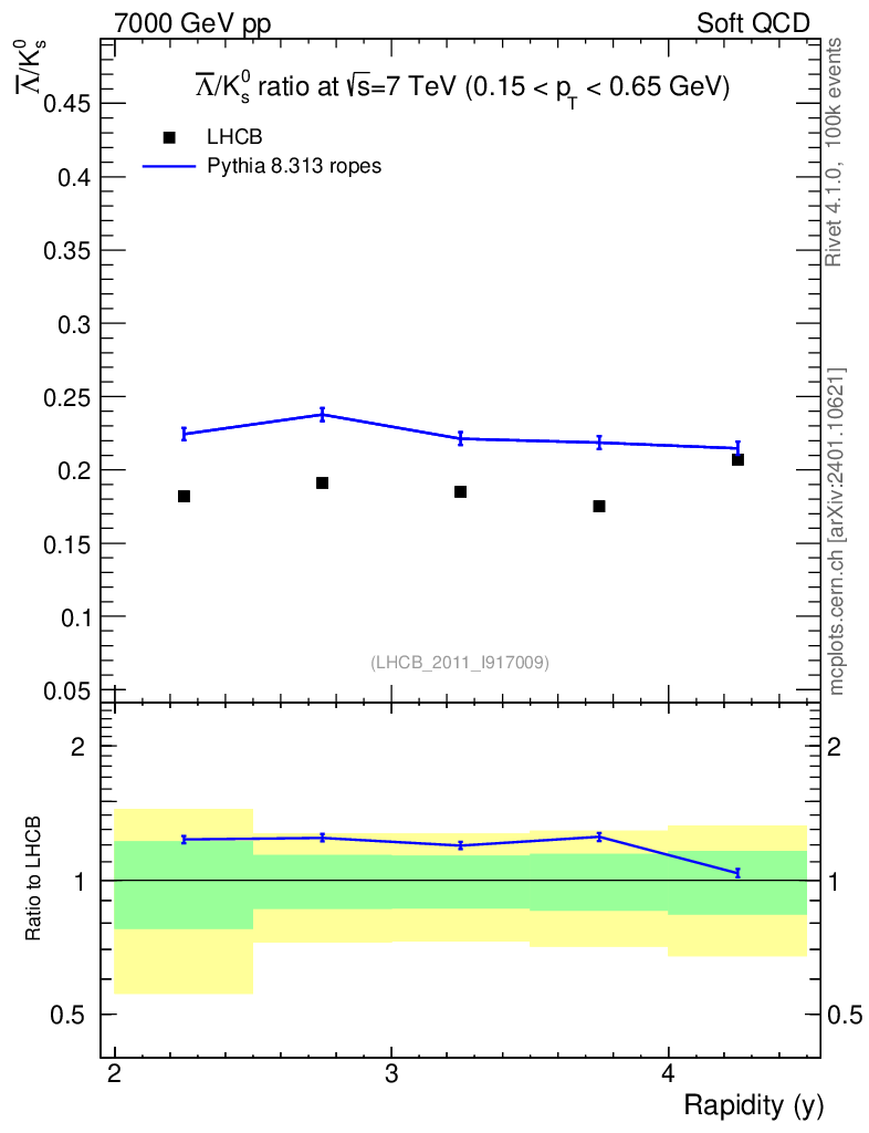 Lines: data, pythia8 8.313 ropes |