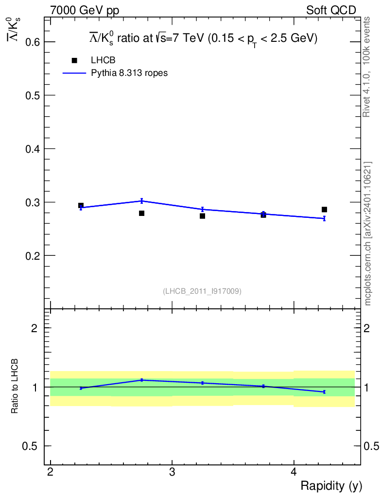 Lines: data, pythia8 8.313 ropes |
