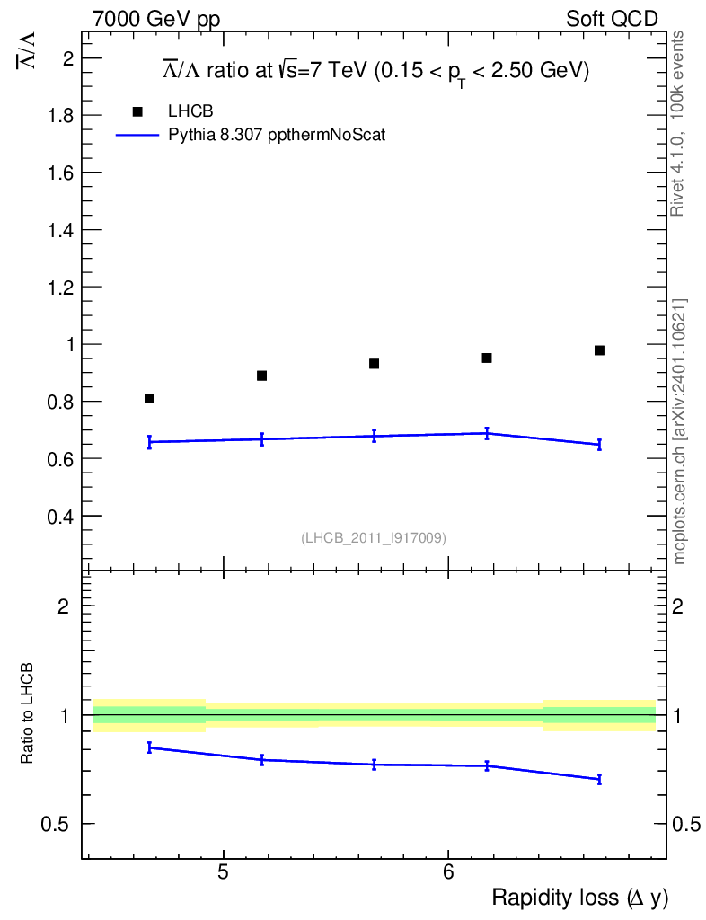 Lines: data, pythia8 8.307 ppthermNoScat |