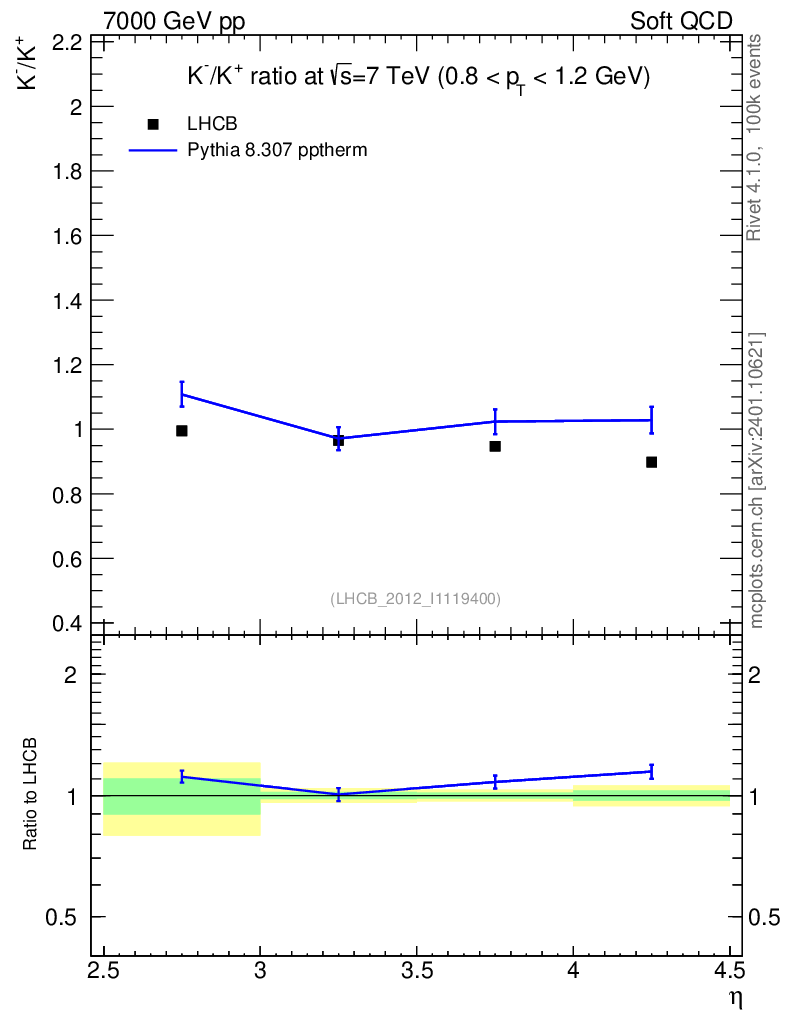 Lines: data, pythia8 8.307 pptherm |