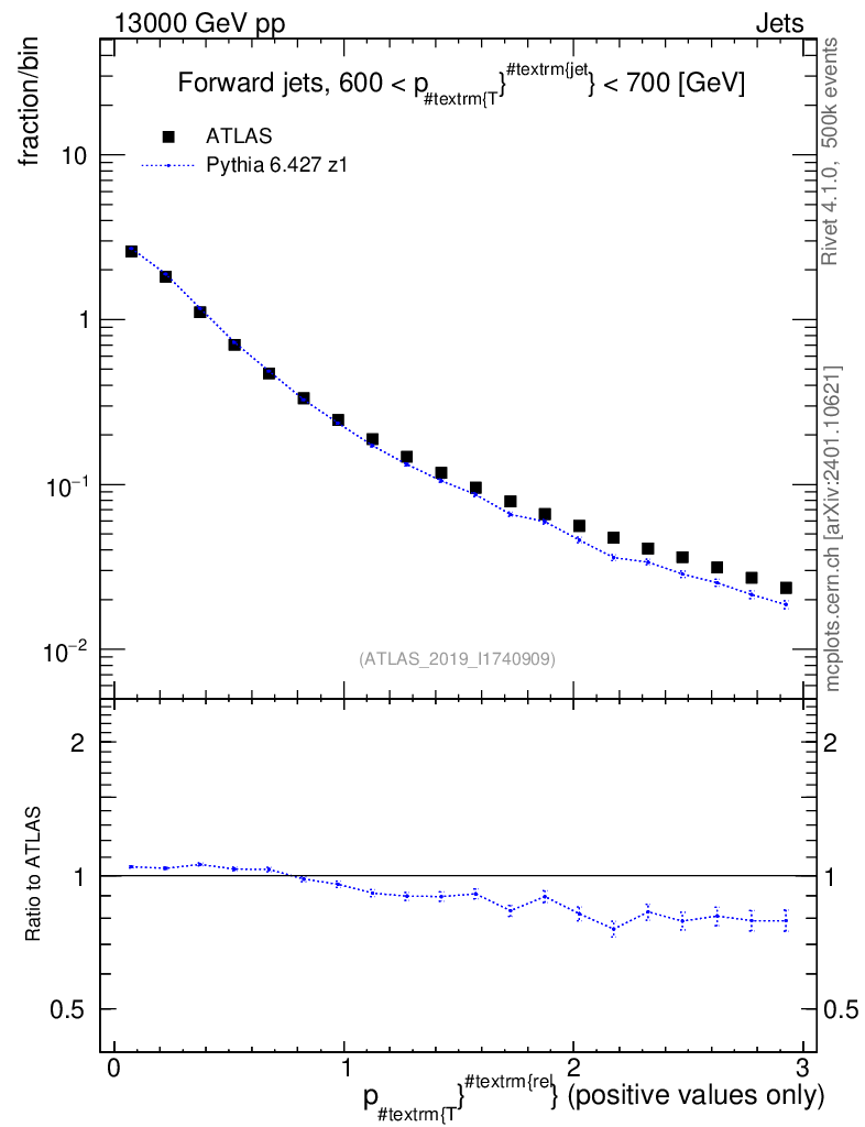 Lines: data, pythia6 6.427 z1 |