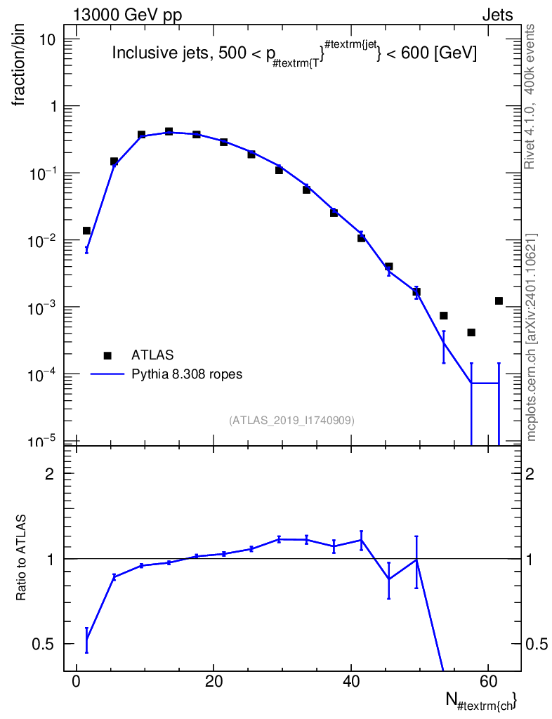 Lines: data, pythia8 8.308 ropes |