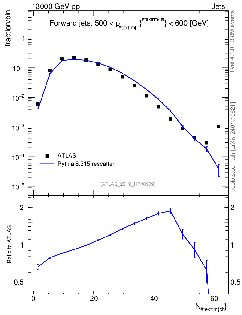 Lines: data, pythia8 8.315 rescatter |