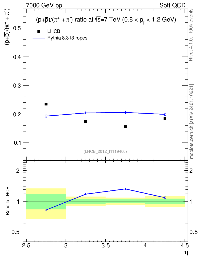 Lines: data, pythia8 8.313 ropes |