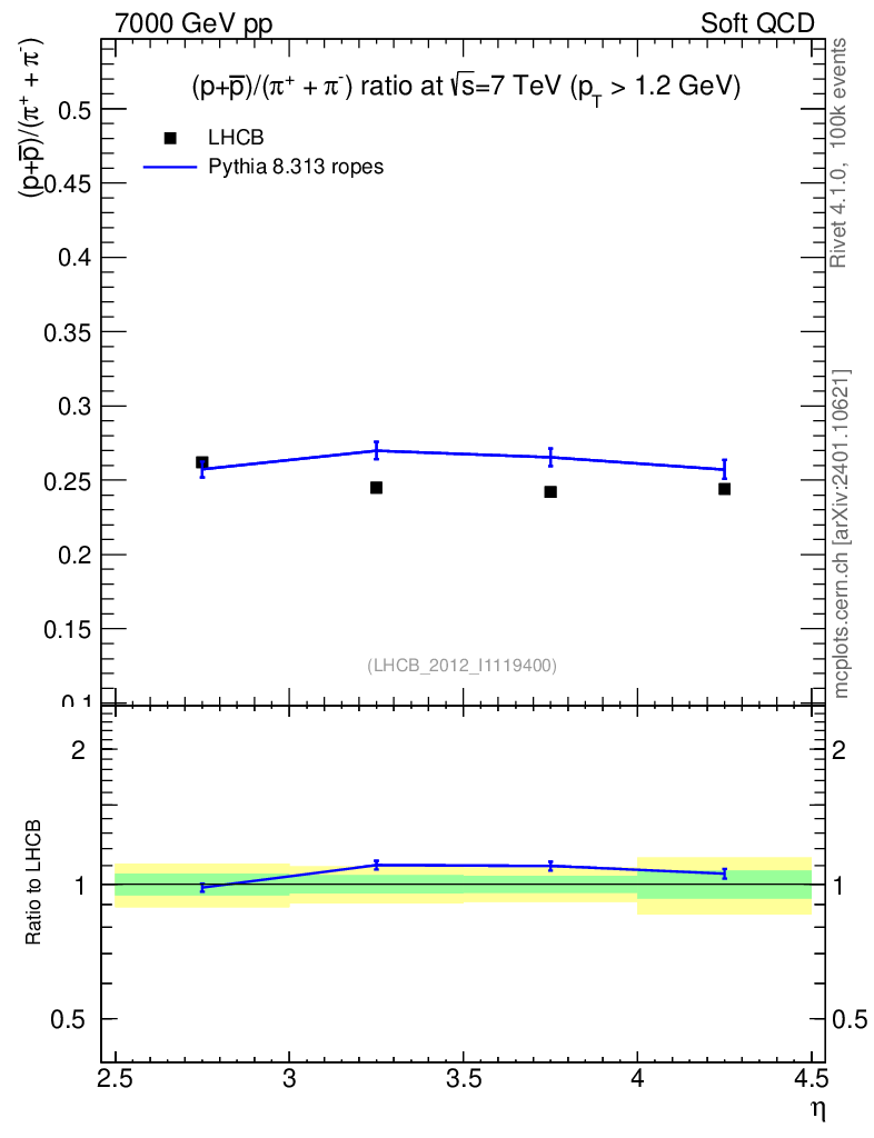 Lines: data, pythia8 8.313 ropes |