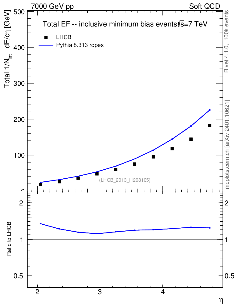 Lines: data, pythia8 8.313 ropes |