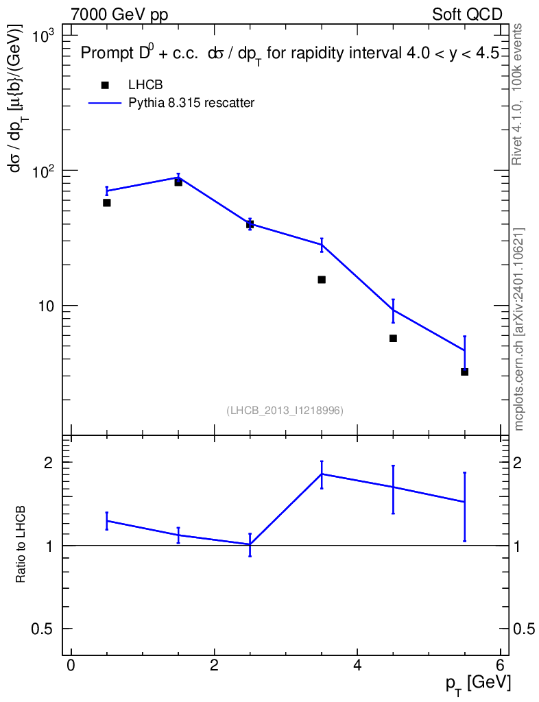 Lines: data, pythia8 8.315 rescatter |