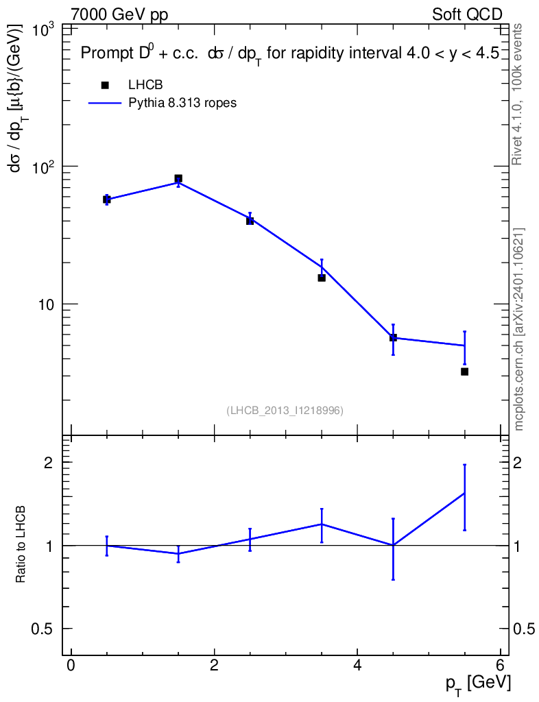 Lines: data, pythia8 8.313 ropes |
