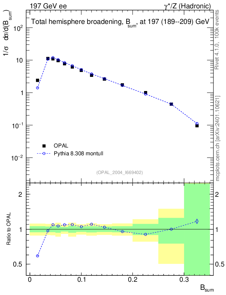 Lines: data, pythia8 8.308 montull |