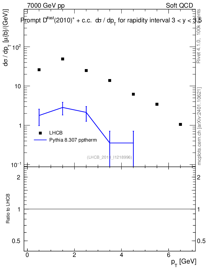 Lines: data, pythia8 8.307 pptherm |