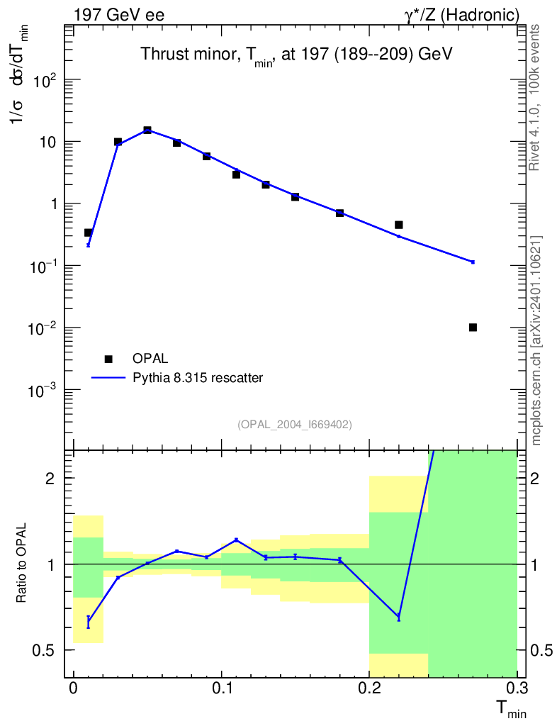 Lines: data, pythia8 8.315 rescatter |
