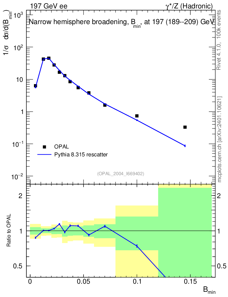 Lines: data, pythia8 8.315 rescatter |