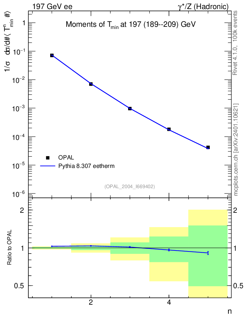 Lines: data, pythia8 8.307 eetherm |