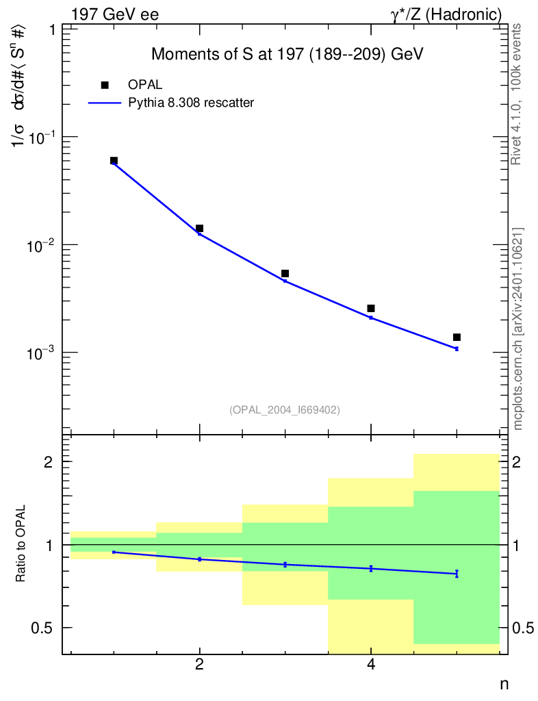 Lines: data, pythia8 8.308 rescatter |