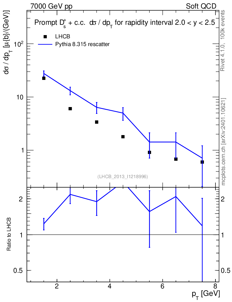 Lines: data, pythia8 8.315 rescatter |