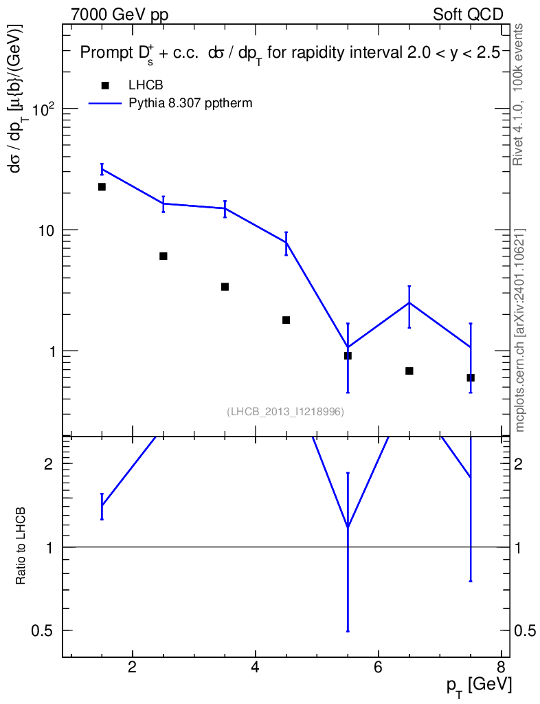 Lines: data, pythia8 8.307 pptherm |