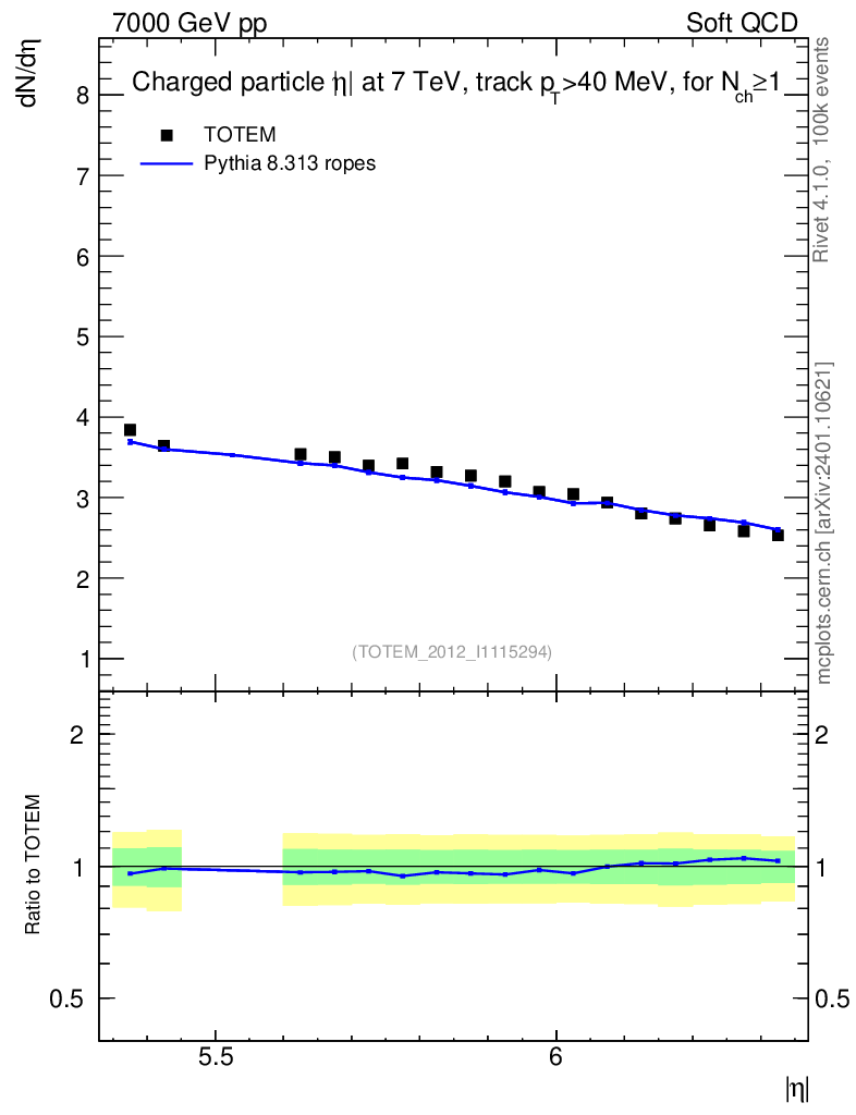 Lines: data, pythia8 8.313 ropes |