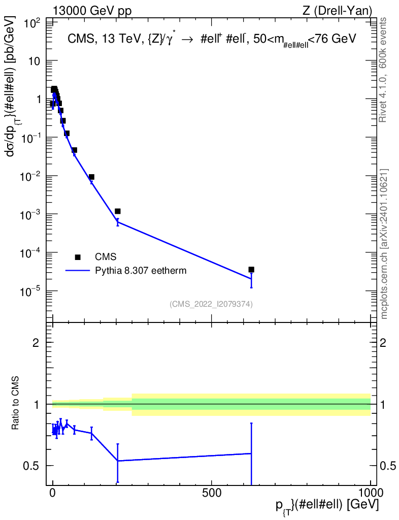 Lines: data, pythia8 8.307 eetherm |