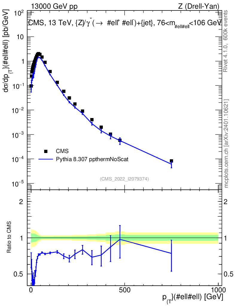 Lines: data, pythia8 8.307 ppthermNoScat |