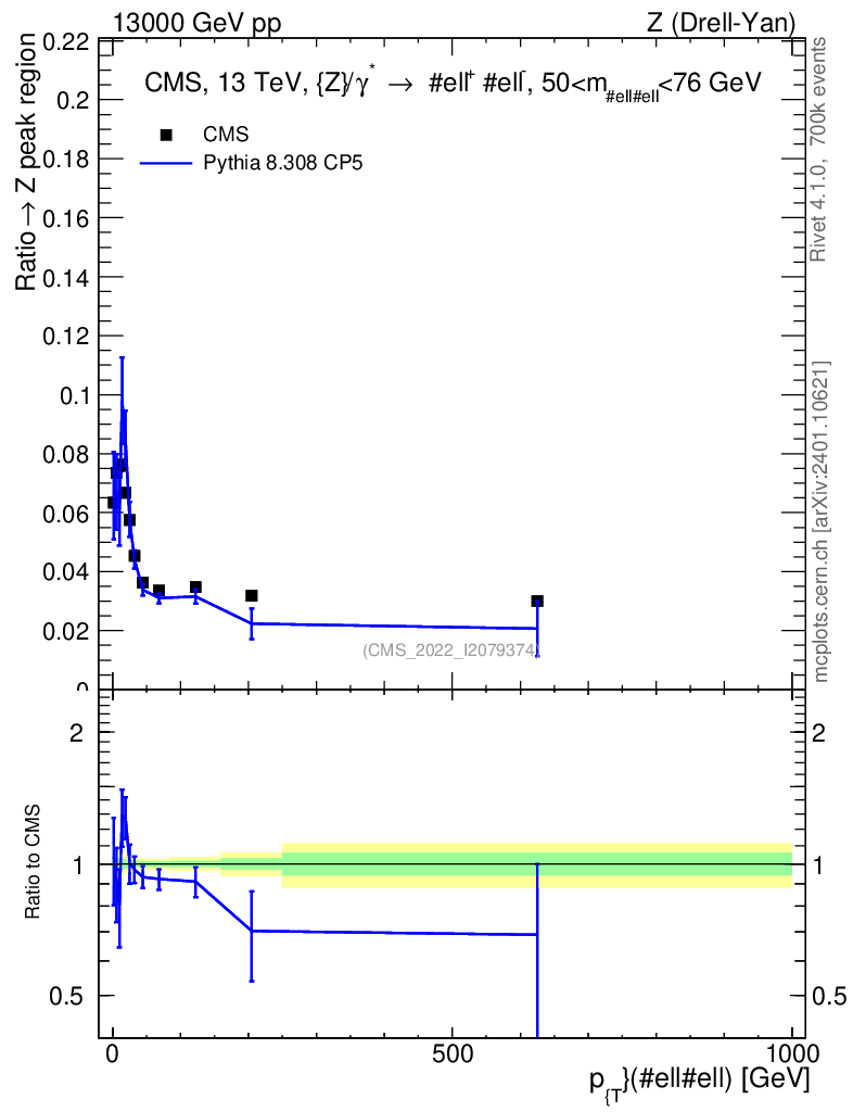 Lines: data, pythia8 8.308 CP5 |