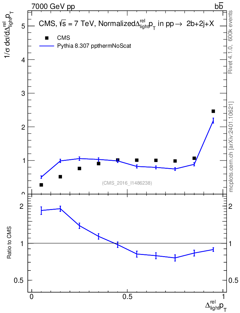 Lines: data, pythia8 8.307 ppthermNoScat |