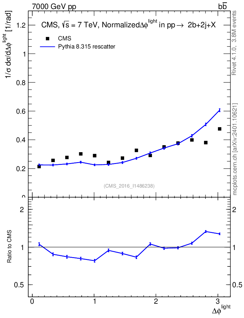 Lines: data, pythia8 8.315 rescatter |