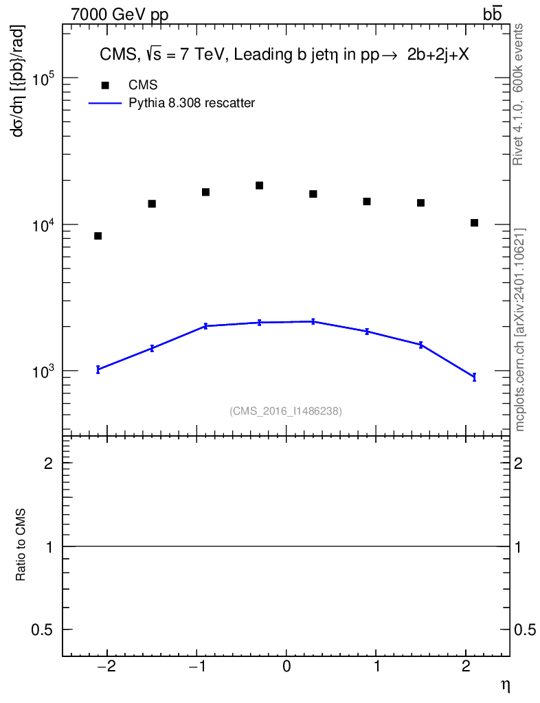 Lines: data, pythia8 8.308 rescatter |