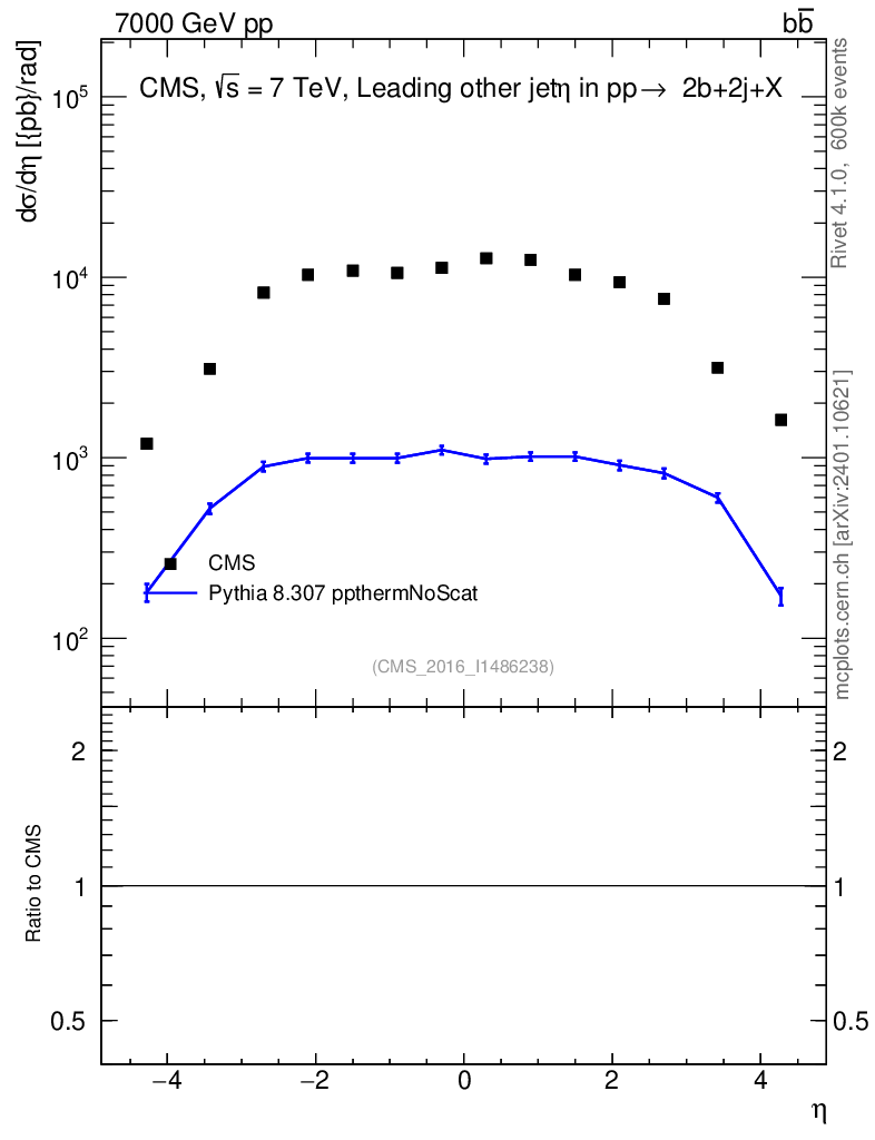 Lines: data, pythia8 8.307 ppthermNoScat |