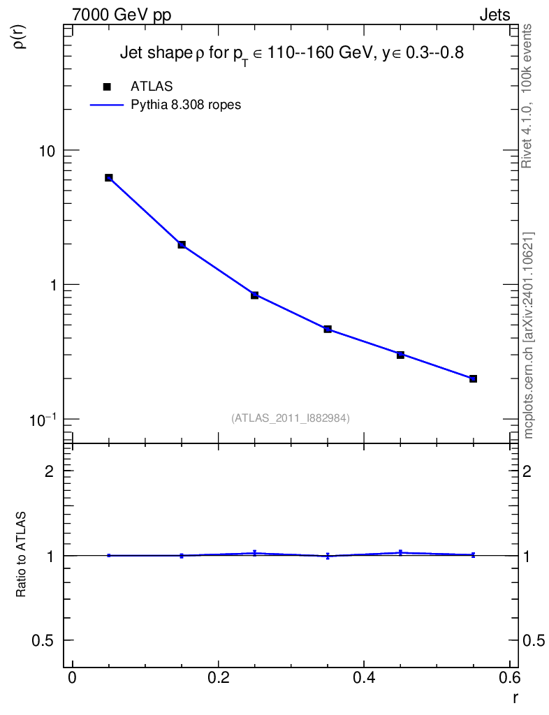 Lines: data, pythia8 8.308 ropes |