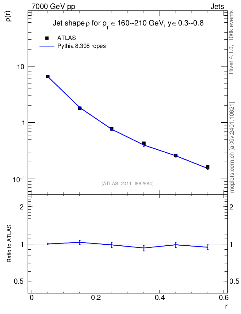 Lines: data, pythia8 8.308 ropes |